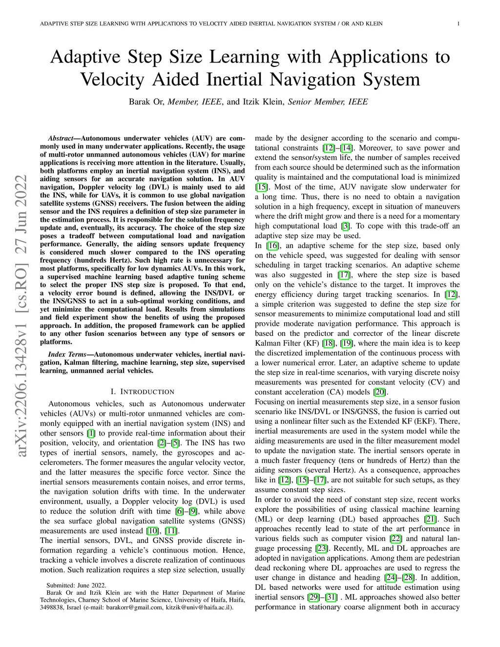 Adaptive Step Size Learning with Applications to Velocity Aided Inertial
