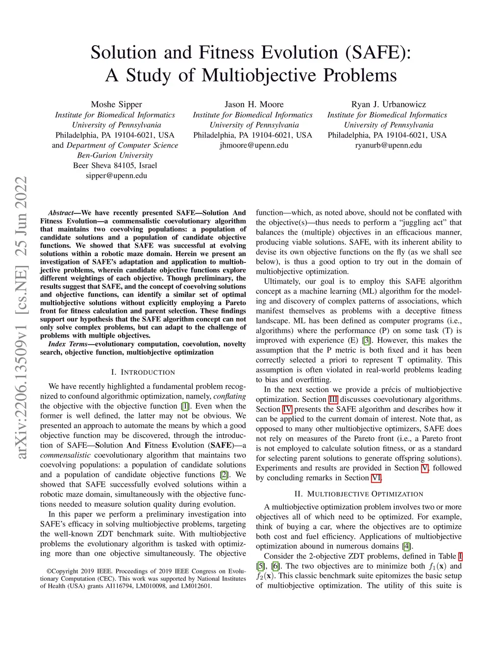Solution and Fitness Evolution (SAFE): A Study of Multiobjective
