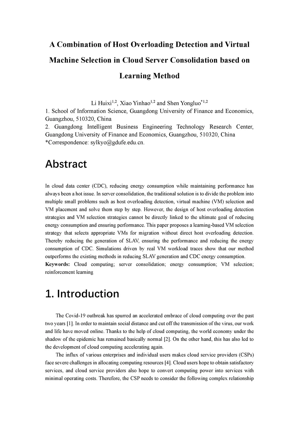 Selection in Cloud Server Consolidation based on Learning Method