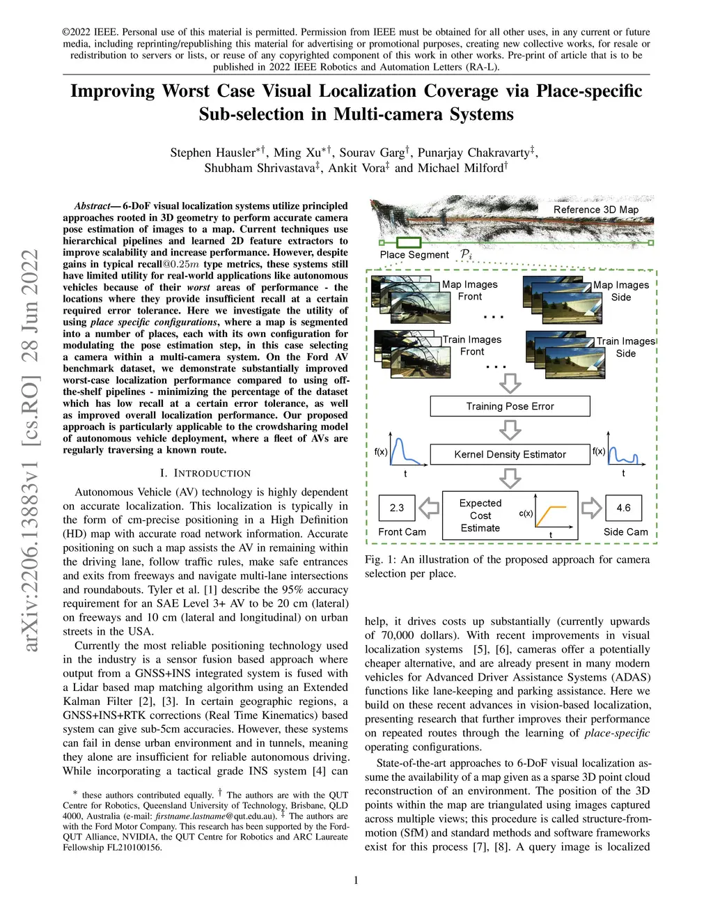 6-DoF visual localization systems utilize principled approaches rooted in 3D geometry to perform accurate camera pose estimation of images to a map. Current techniques use hierarchical pipelines and learned 2D feature extractors to improve scalability and increase performance. However, despite gains in typical recall@0.25m type metrics, these systems still have limited utility for real-world applications like autonomous vehicles because of their `worst' areas of performance - the locations where they provide insufficient recall at a certain required error tolerance. Here we investigate the utility of using `place specific configurations', where a map is segmented into a number of places, each with its own configuration for modulating the pose estimation step, in this case selecting a camera within a multi-camera system. On the Ford AV benchmark dataset, we demonstrate substantially improved worst-case localization performance compared to using off-the-shelf pipelines - minimizing the percentage of the dataset which has low recall at a certain error tolerance, as well as improved overall localization performance. Our proposed approach is particularly applicable to the crowdsharing model of autonomous vehicle deployment, where a fleet of AVs are regularly traversing a known route.