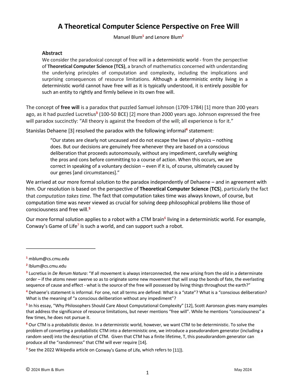 We consider the paradoxical concept of free will from the perspective of Theoretical Computer Science (TCS), a branch of mathematics concerned with understanding the underlying principles of computation and complexity, including the implications and surprising consequences of resource limitations.