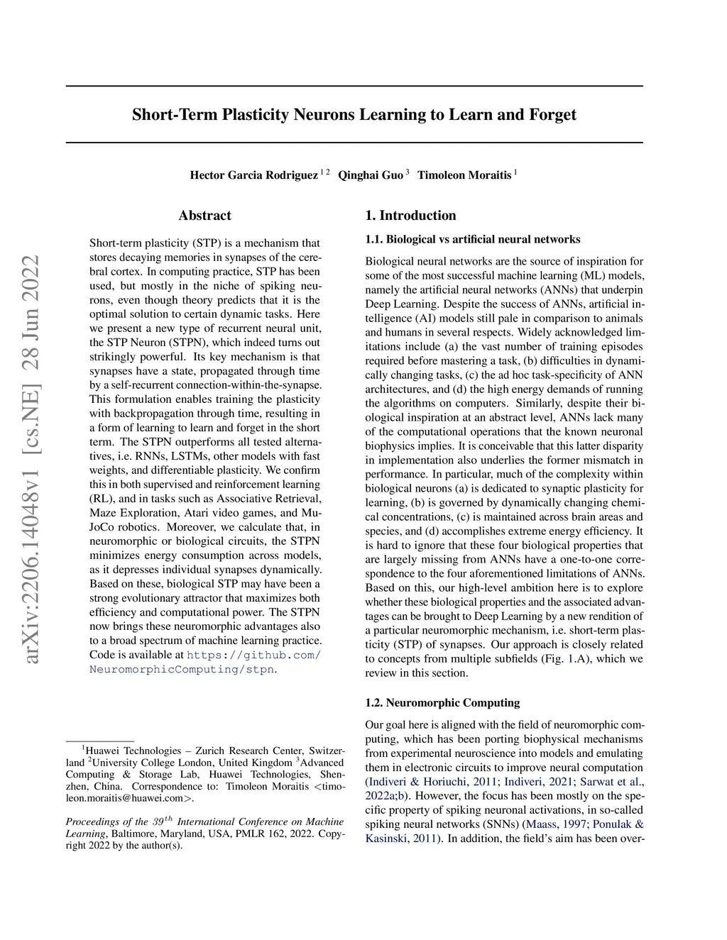 Short-Term Plasticity Neurons Learning to Learn and Forget