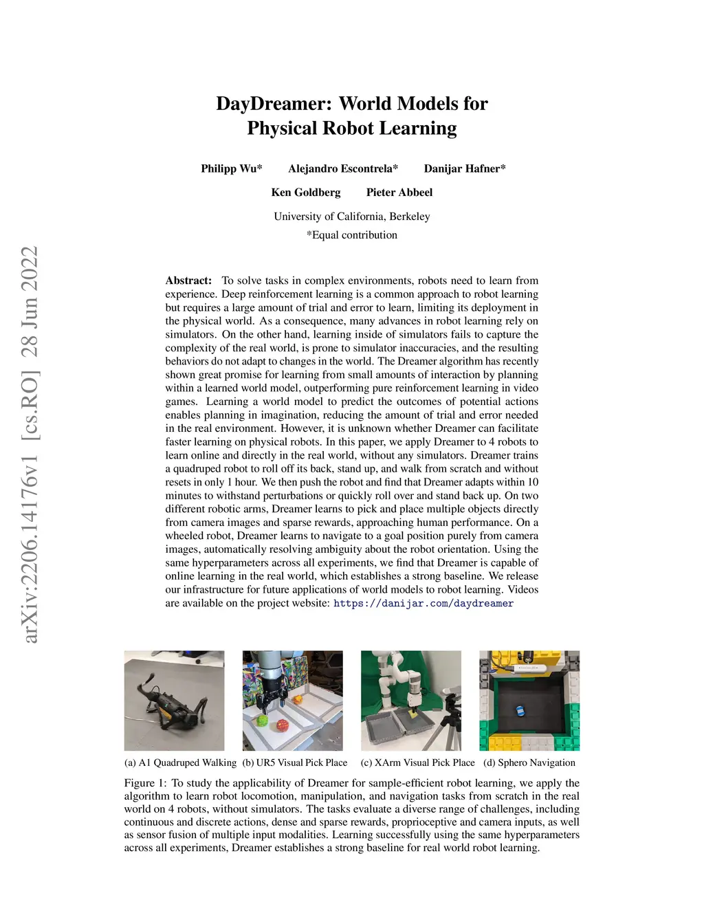 DayDreamer: World Models for Physical Robot Learning