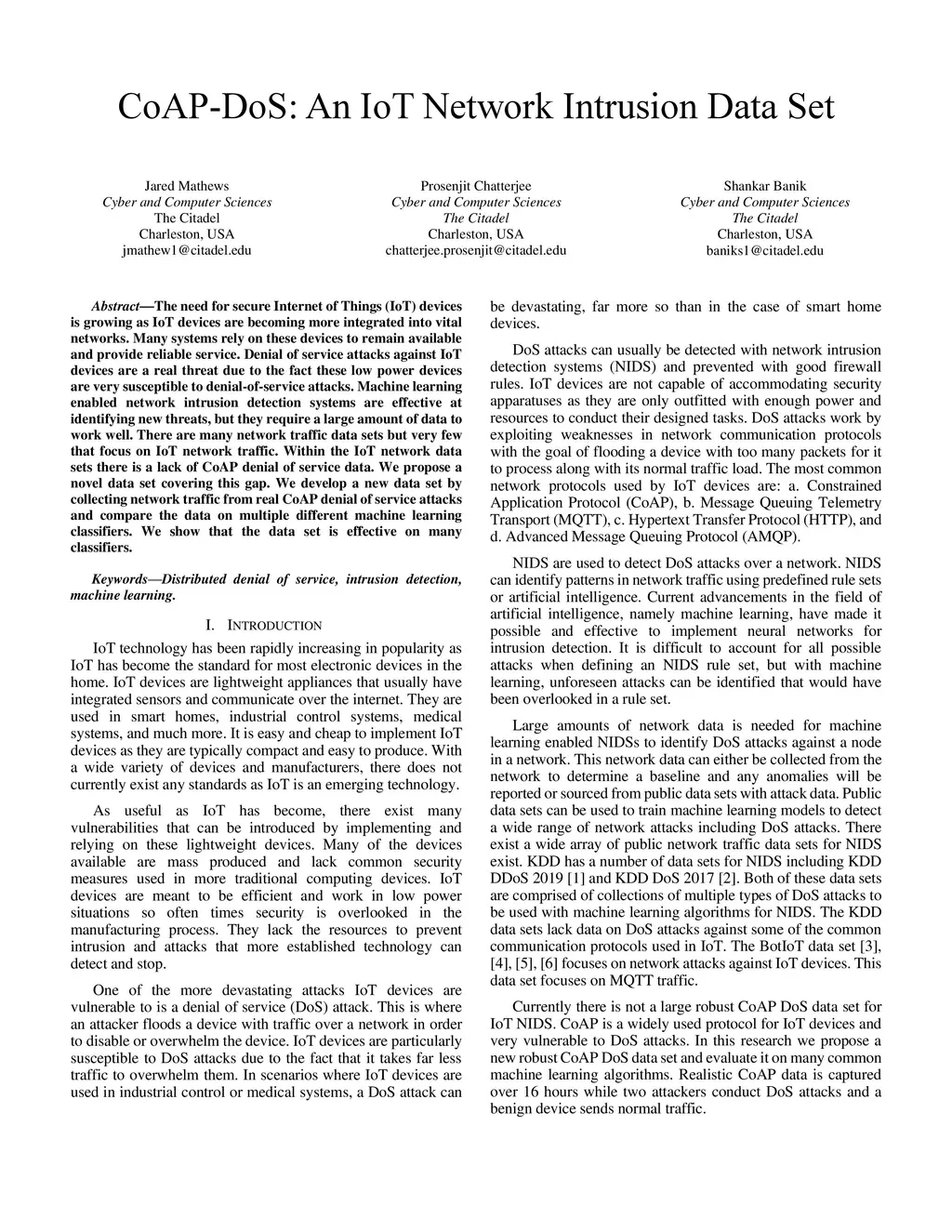 CoAP-DoS: An IoT Network Intrusion Dataset