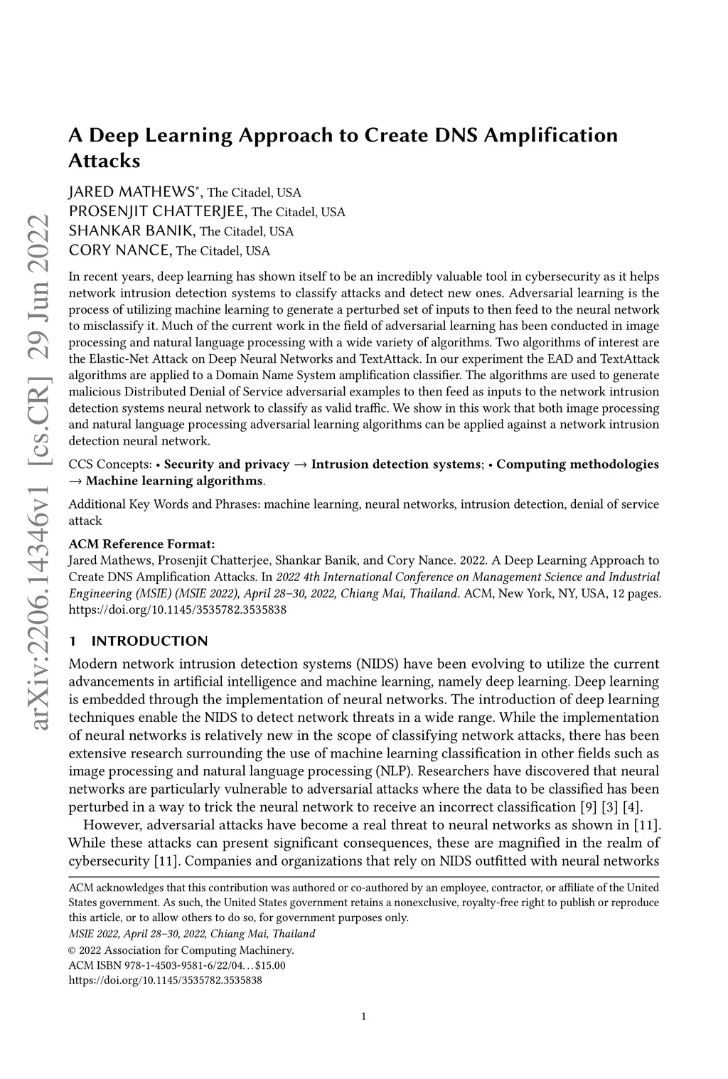 A Deep Learning Approach to Create DNS Amplification Attacks