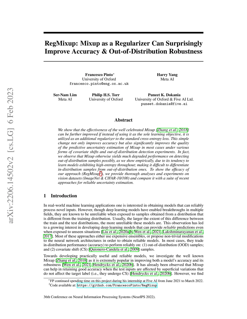 We show that the effectiveness of the well celebrated Mixup [Zhang et al., 2018] can be further improved if instead of using it as the sole learning objective, it is utilized as an additional regularizer to the standard cross-entropy loss. This simple change not only provides much improved accuracy but also significantly improves the quality of the predictive uncertainty estimation of Mixup in most cases under various forms of covariate shifts and out-of-distribution detection experiments. In fact, we observe that Mixup yields much degraded performance on detecting out-of-distribution samples possibly, as we show empirically, because of its tendency to learn models that exhibit high-entropy throughout; making it difficult to differentiate in-distribution samples from out-distribution ones. To show the efficacy of our approach (RegMixup), we provide thorough analyses and experiments on vision datasets (ImageNet & CIFAR-10/100) and compare it with a suite of recent approaches for reliable uncertainty estimation.