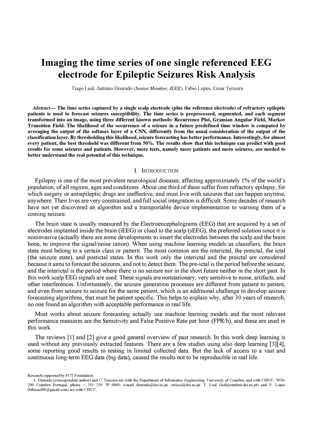 The time series captured by a single scalp electrode (plus the reference electrode) of refractory epileptic patients is used to forecast seizures susceptibility. The time series is preprocessed, segmented, and each segment transformed into an image, using three different known methods: Recurrence Plot, Gramian Angular Field, Markov Transition Field. The likelihood of the occurrence of a seizure in a future predefined time window is computed by averaging the output of the softmax layer of a CNN, differently from the usual consideration of the output of the classification layer. By thresholding this likelihood, seizure forecasting has better performance. Interestingly, for almost every patient, the best threshold was different from 50%. The results show that this technique can predict with good results for some seizures and patients. However, more tests, namely more patients and more seizures, are needed to better understand the real potential of this technique.