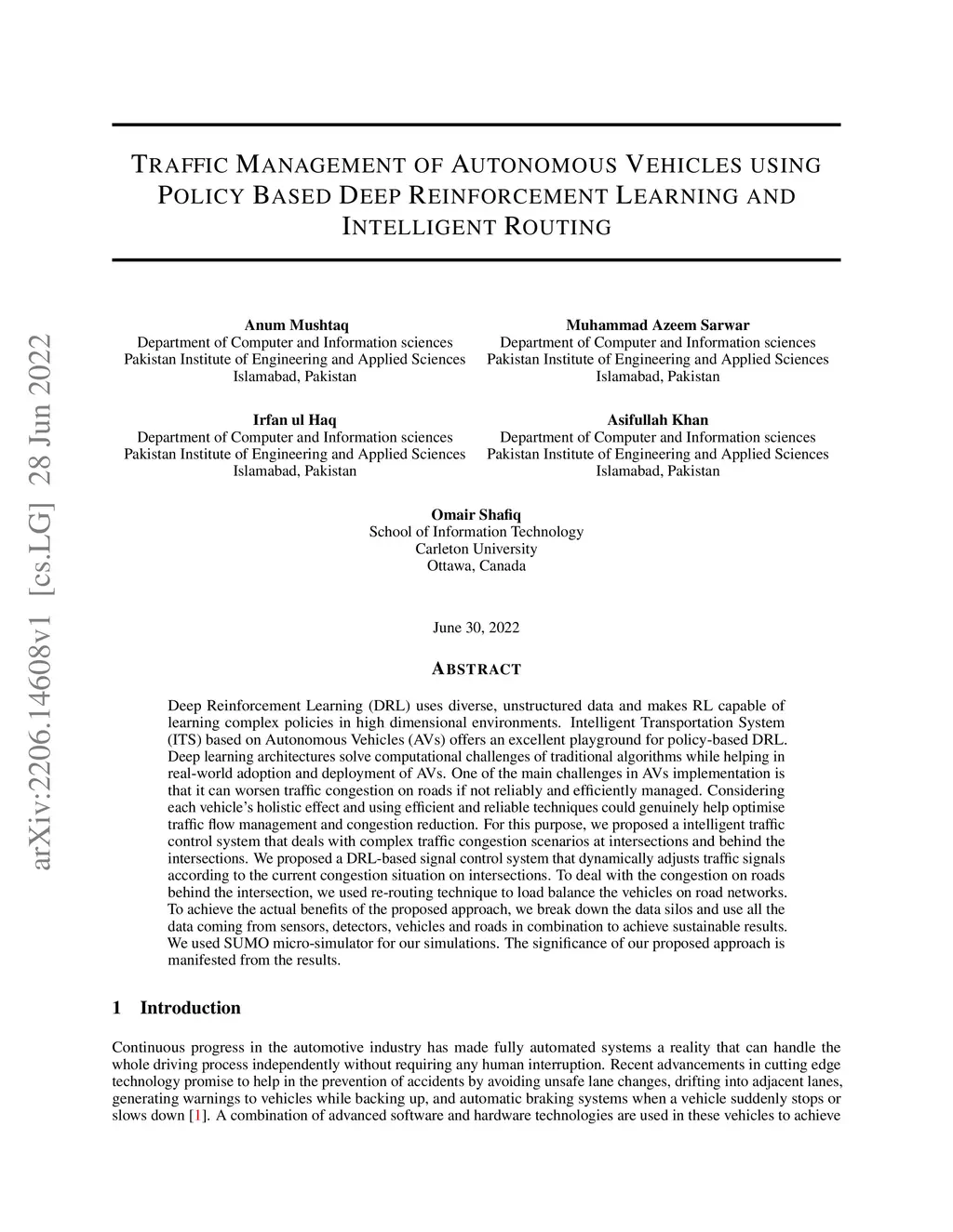 Traffic Management of Autonomous Vehicles using Policy Based Deep