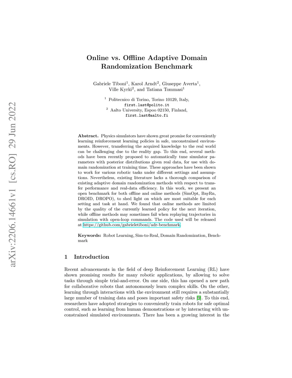 Online vs. Offline Adaptive Domain Randomization Benchmark