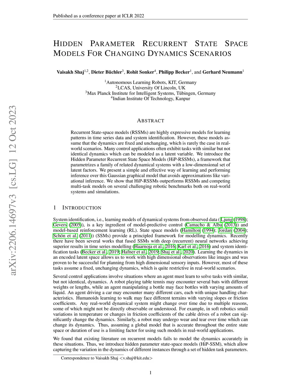 Hidden Parameter Recurrent State Space Models For Changing Dynamics