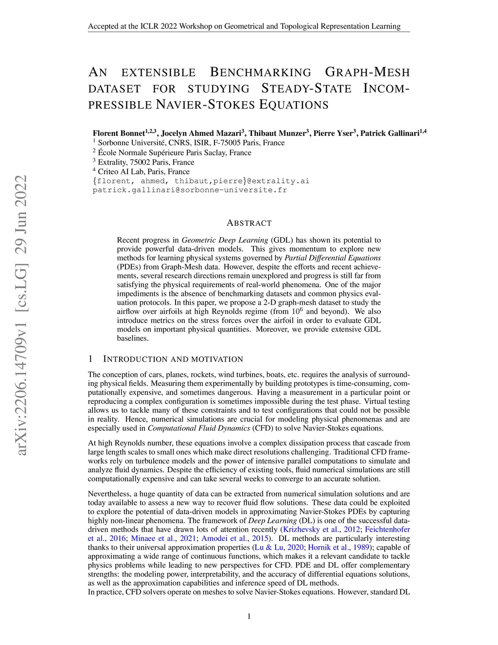 Recent progress in \emph{Geometric Deep Learning} (GDL) has shown its potential to provide powerful data-driven models. This gives momentum to explore new methods for learning physical systems governed by \emph{Partial Differential Equations} (PDEs) from Graph-Mesh data. However, despite the efforts and recent achievements, several research directions remain unexplored and progress is still far from satisfying the physical requirements of real-world phenomena. One of the major impediments is the absence of benchmarking datasets and common physics evaluation protocols. In this paper, we propose a 2-D graph-mesh dataset to study the airflow over airfoils at high Reynolds regime (from and beyond). We also introduce metrics on the stress forces over the airfoil in order to evaluate GDL models on important physical quantities. Moreover, we provide extensive GDL baselines.