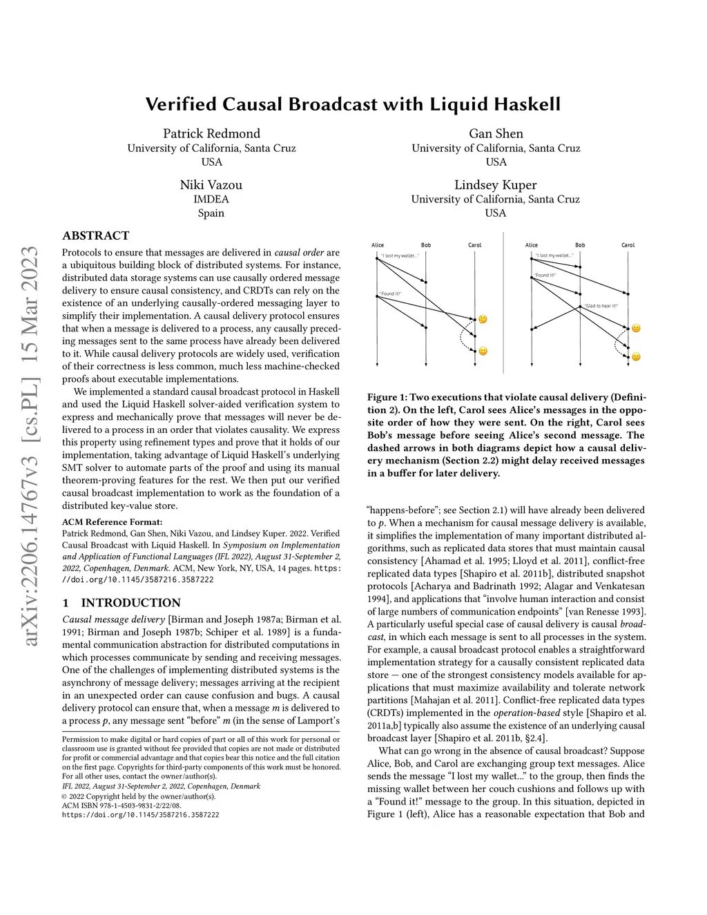 Verified Causal Broadcast with Liquid Haskell