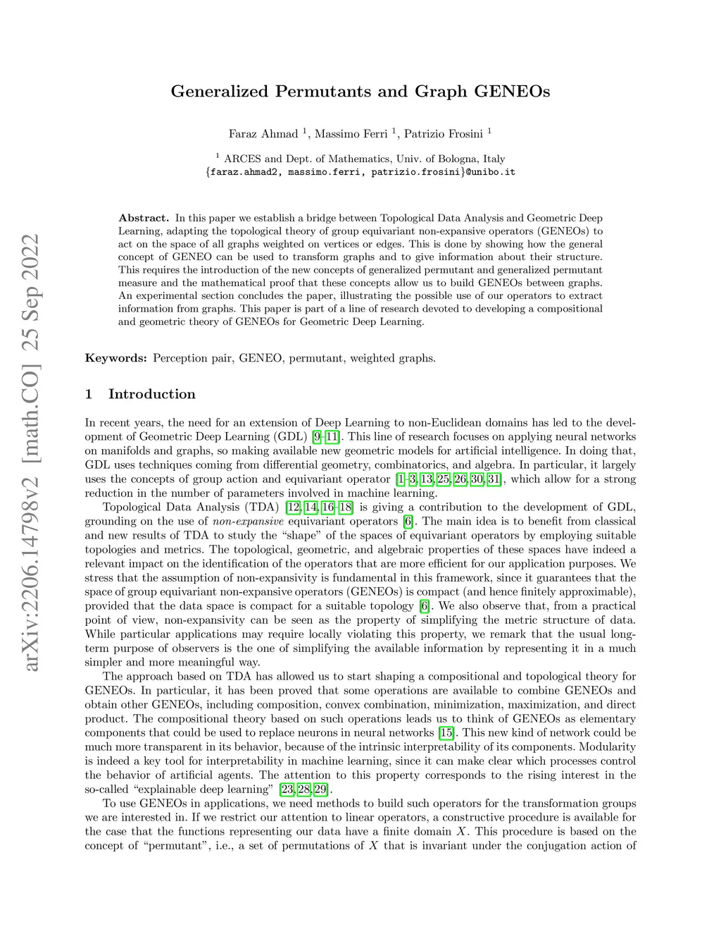 In this paper we establish a bridge between Topological Data Analysis and Geometric Deep Learning, adapting the topological theory of group equivariant non-expansive operators (GENEOs) to act on the space of all graphs weighted on vertices or edges. This is done by showing how the general concept of GENEO can be used to transform graphs and to give information about their structure. This requires the introduction of the new concepts of generalized permutant and generalized permutant measure and the mathematical proof that these concepts allow us to build GENEOs between graphs. An experimental section concludes the paper, illustrating the possible use of our operators to extract information from graphs. This paper is part of a line of research devoted to developing a compositional and geometric theory of GENEOs for Geometric Deep Learning.
