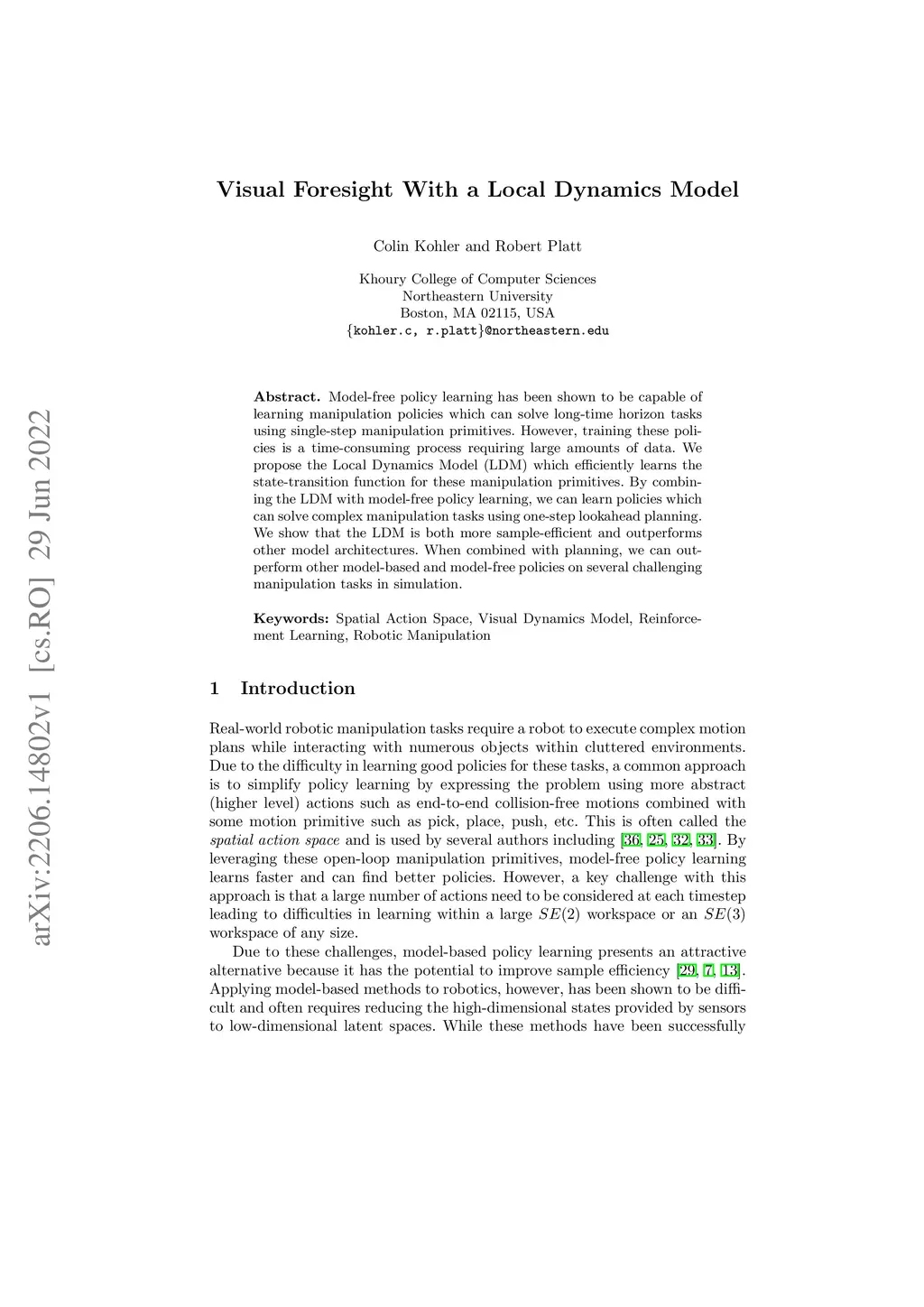Visual Foresight With a Local Dynamics Model