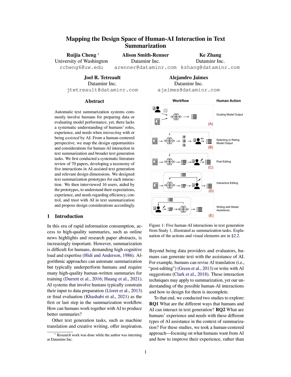 Mapping the Design Space of Human-AI Interaction in Text Summarization