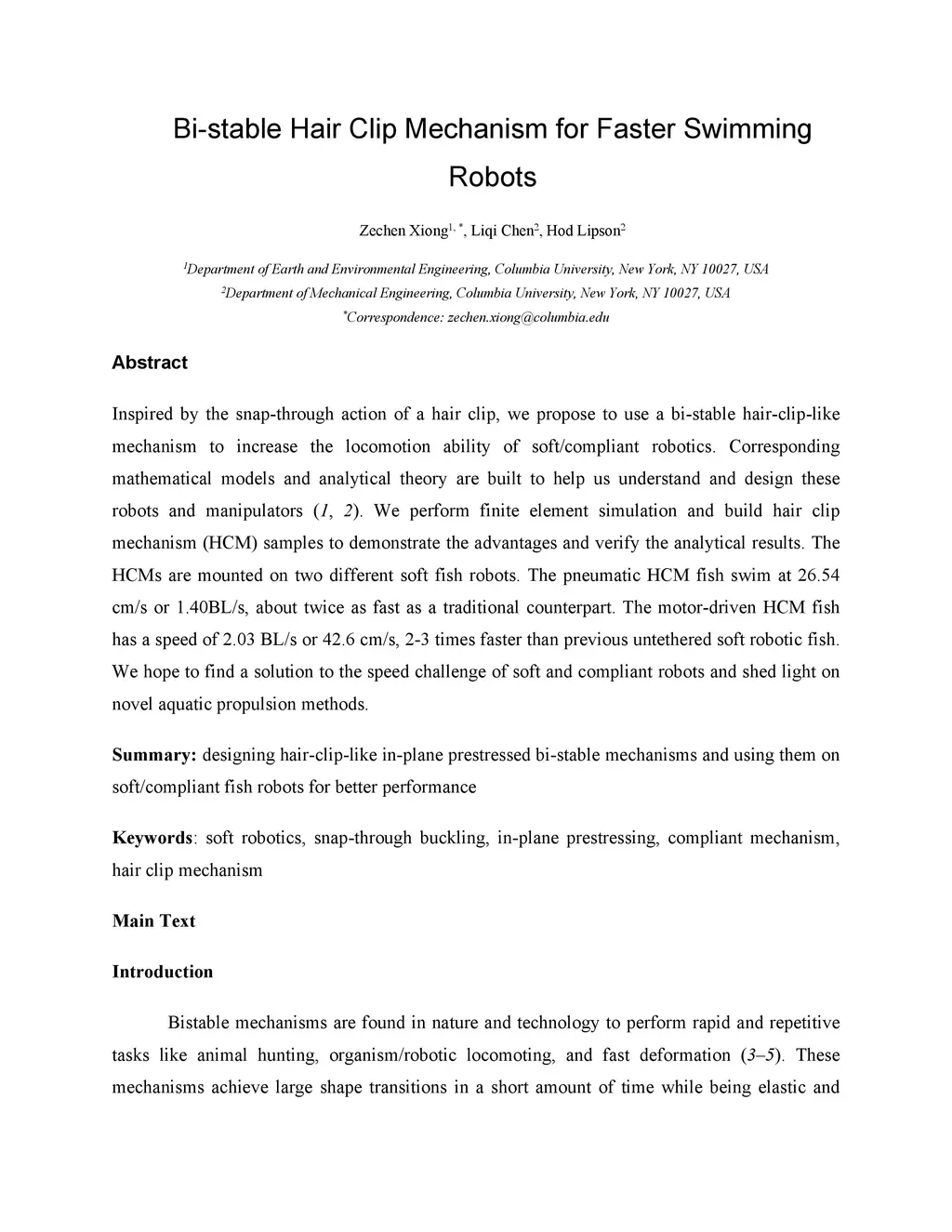 Pre-stressed Bi-stable Hair Clip Mechanism for Faster Swimming Robots