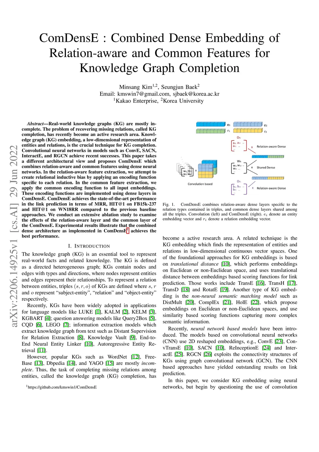 ComDensE : Combined Dense Embedding of Relation-aware and Common