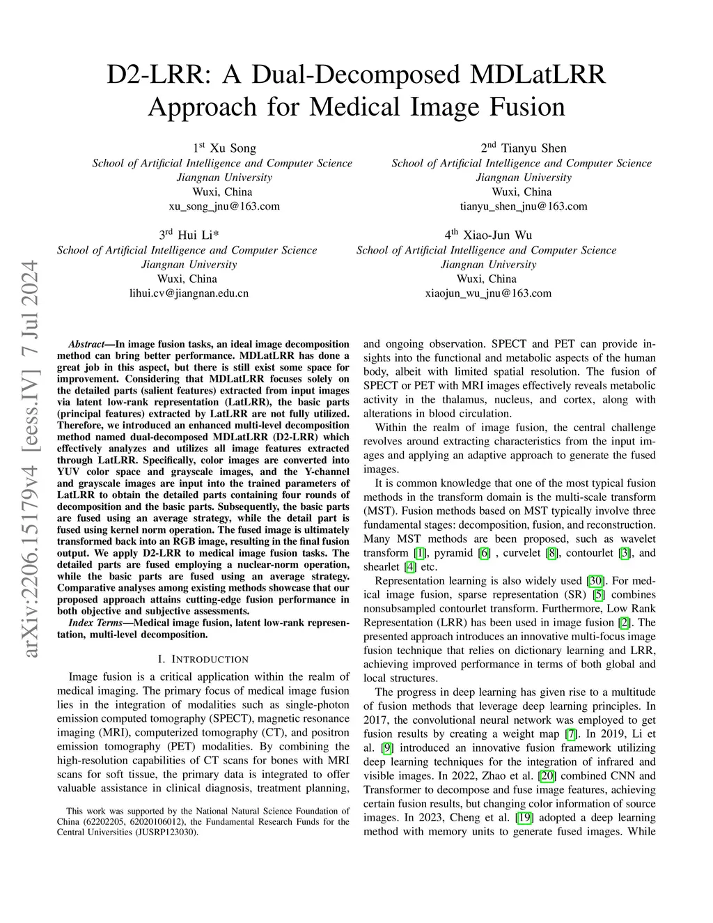 D2-LRR: A Dual-Decomposed MDLatLRR Approach for Medical Image Fusion