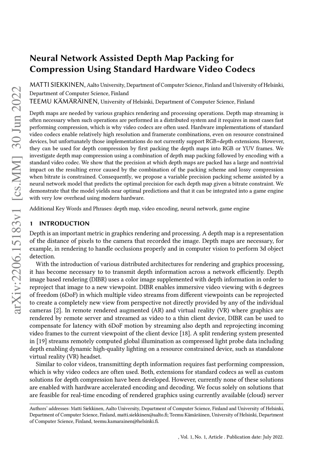 Neural Network Assisted Depth Map Packing for Compression Using Standard