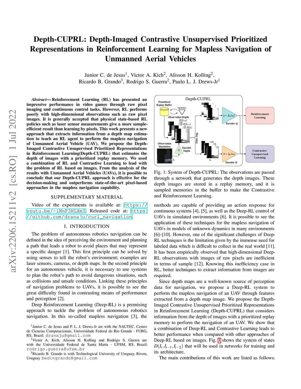 Depth-CUPRL: Depth-Imaged Contrastive Unsupervised Prioritized
