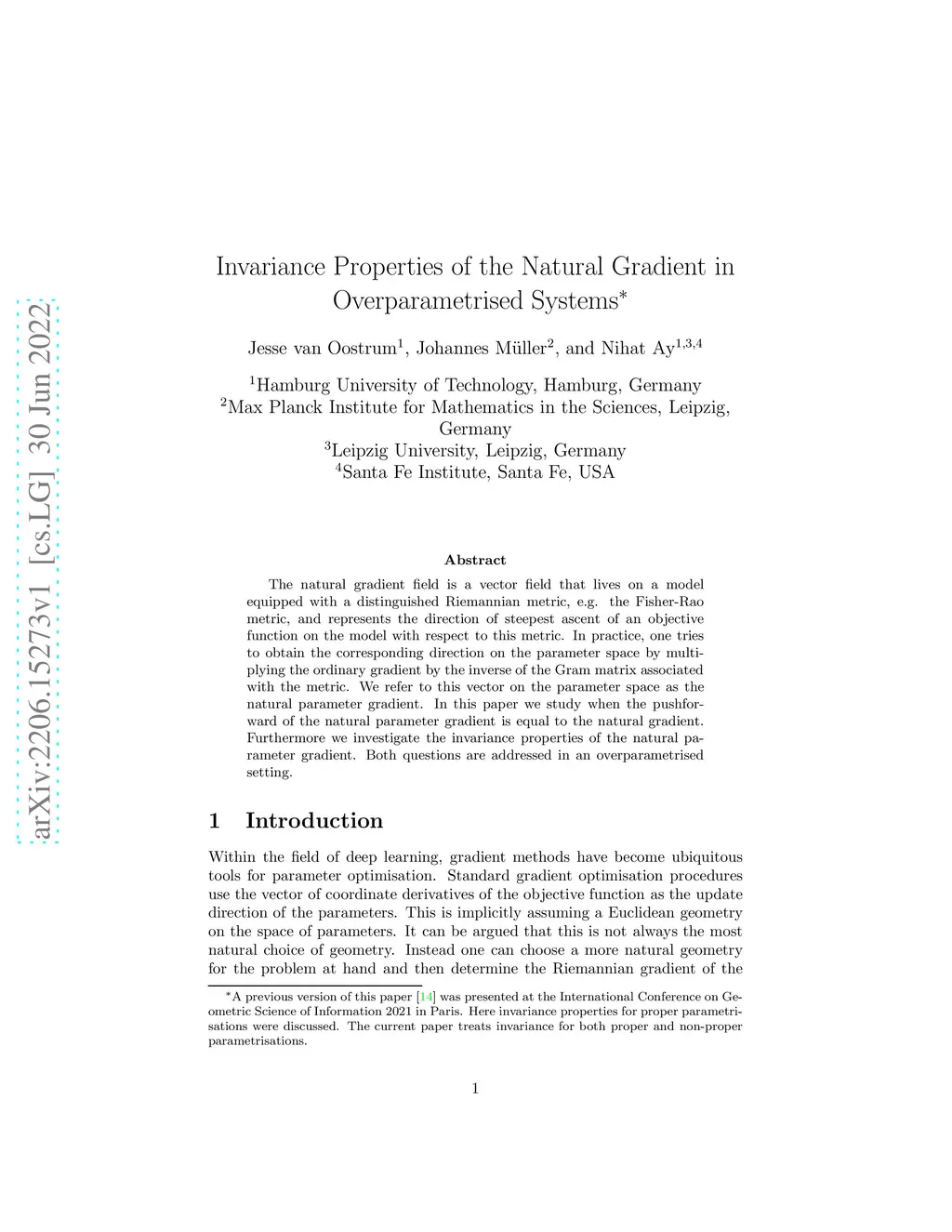 Invariance Properties of the Natural Gradient in Overparametrised