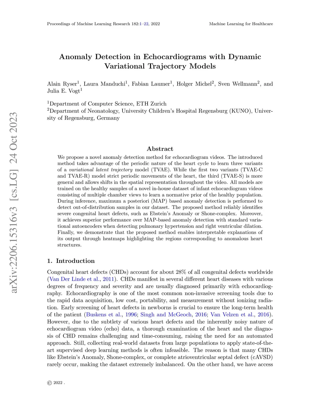 Anomaly Detection in Echocardiograms with Dynamic Variational Trajectory