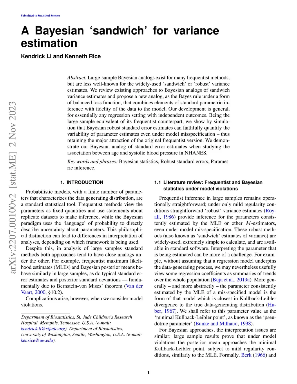 Large-sample Bayesian analogs exist for many frequentist methods, but are less well-known for the widely-used 'sandwich' or 'robust' variance estimates. We review existing approaches to Bayesian analogs of sandwich variance estimates and propose a new analog, as the Bayes rule under a form of balanced loss function, that combines elements of standard parametric inference with fidelity of the data to the model. Our development is general, for essentially any regression setting with independent outcomes. Being the large-sample equivalent of its frequentist counterpart, we show by simulation that Bayesian robust standard error estimates can faithfully quantify the variability of parameter estimates even under model misspecification -- thus retaining the major attraction of the original frequentist version. We demonstrate our Bayesian analog of standard error estimates when studying the association between age and systolic blood pressure in NHANES.