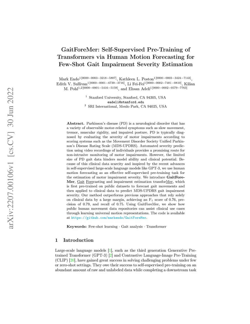 GaitForeMer: Self-Supervised Pre-Training of Transformers via Human