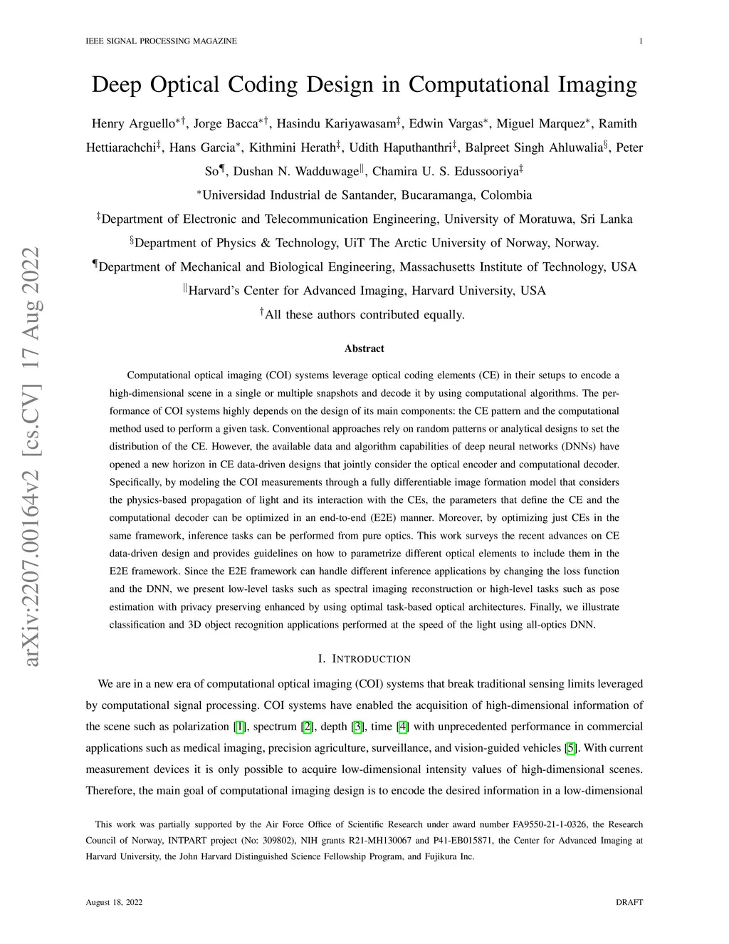 Computational optical imaging (COI) systems leverage optical coding elements (CE) in their setups to encode a high-dimensional scene in a single or multiple snapshots and decode it by using computational algorithms. The performance of COI systems highly depends on the design of its main components: the CE pattern and the computational method used to perform a given task. Conventional approaches rely on random patterns or analytical designs to set the distribution of the CE. However, the available data and algorithm capabilities of deep neural networks (DNNs) have opened a new horizon in CE data-driven designs that jointly consider the optical encoder and computational decoder. Specifically, by modeling the COI measurements through a fully differentiable image formation model that considers the physics-based propagation of light and its interaction with the CEs, the parameters that define the CE and the computational decoder can be optimized in an end-to-end (E2E) manner. Moreover, by optimizing just CEs in the same framework, inference tasks can be performed from pure optics. This work surveys the recent advances on CE data-driven design and provides guidelines on how to parametrize different optical elements to include them in the E2E framework. Since the E2E framework can handle different inference applications by changing the loss function and the DNN, we present low-level tasks such as spectral imaging reconstruction or high-level tasks such as pose estimation with privacy preserving enhanced by using optimal task-based optical architectures. Finally, we illustrate classification and 3D object recognition applications performed at the speed of the light using all-optics DNN.