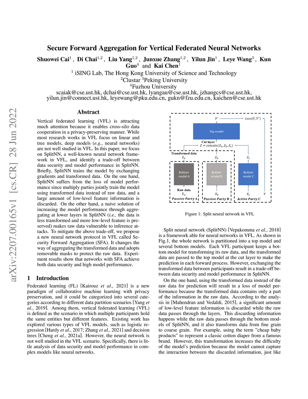 Secure Forward Aggregation for Vertical Federated Neural Networks