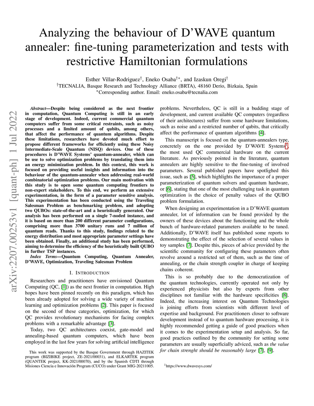 Analyzing the behaviour of D'WAVE quantum annealer: fine-tuning