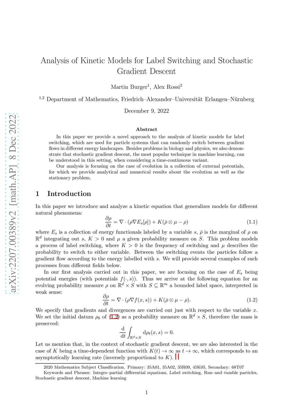 Analysis of Kinetic Models for Label Switching and Stochastic Gradient