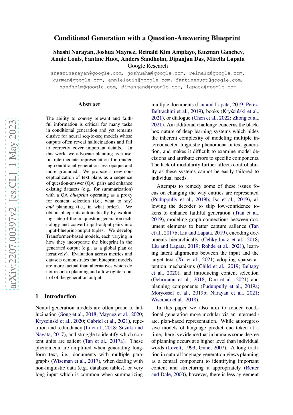 Conditional Generation with a Question-Answering Blueprint