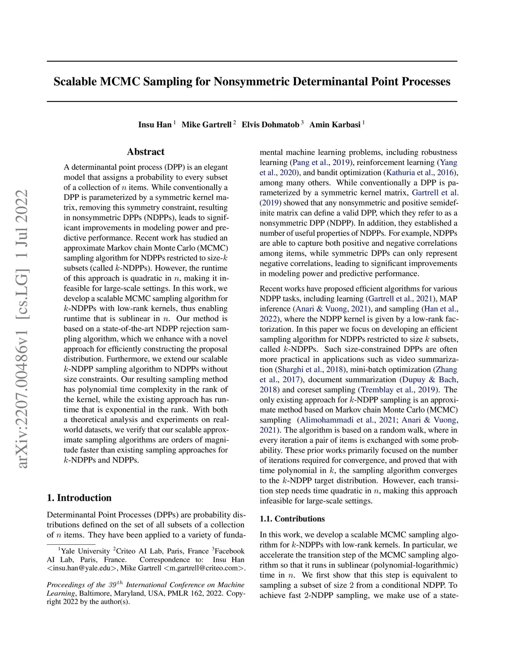 Scalable MCMC Sampling for Nonsymmetric Determinantal Point Processes