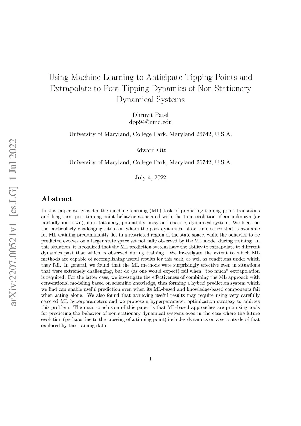In this paper we consider the machine learning (ML) task of predicting tipping point transitions and long-term post-tipping-point behavior associated with the time evolution of an unknown (or partially unknown), non-stationary, potentially noisy and chaotic, dynamical system. We focus on the particularly challenging situation where the past dynamical state time series that is available for ML training predominantly lies in a restricted region of the state space, while the behavior to be predicted evolves on a larger state space set not fully observed by the ML model during training. In this situation, it is required that the ML prediction system have the ability to extrapolate to different dynamics past that which is observed during training. We investigate the extent to which ML methods are capable of accomplishing useful results for this task, as well as conditions under which they fail. In general, we found that the ML methods were surprisingly effective even in situations that were extremely challenging, but do (as one would expect) fail when ``too much" extrapolation is required. For the latter case, we investigate the effectiveness of combining the ML approach with conventional modeling based on scientific knowledge, thus forming a hybrid prediction system which we find can enable useful prediction even when its ML-based and knowledge-based components fail when acting alone. We also found that achieving useful results may require using very carefully selected ML hyperparameters and we propose a hyperparameter optimization strategy to address this problem. The main conclusion of this paper is that ML-based approaches are promising tools for predicting the behavior of non-stationary dynamical systems even in the case where the future evolution (perhaps due to the crossing of a tipping point) includes dynamics on a set outside of that explored by the training data.