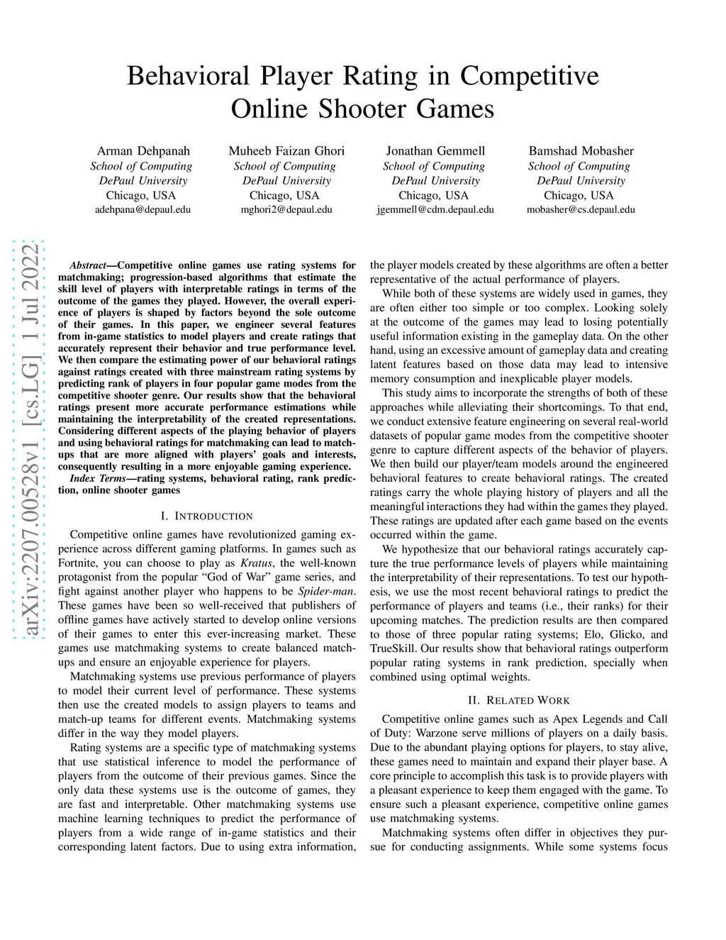 Behavioral Player Rating in Competitive Online Shooter Games