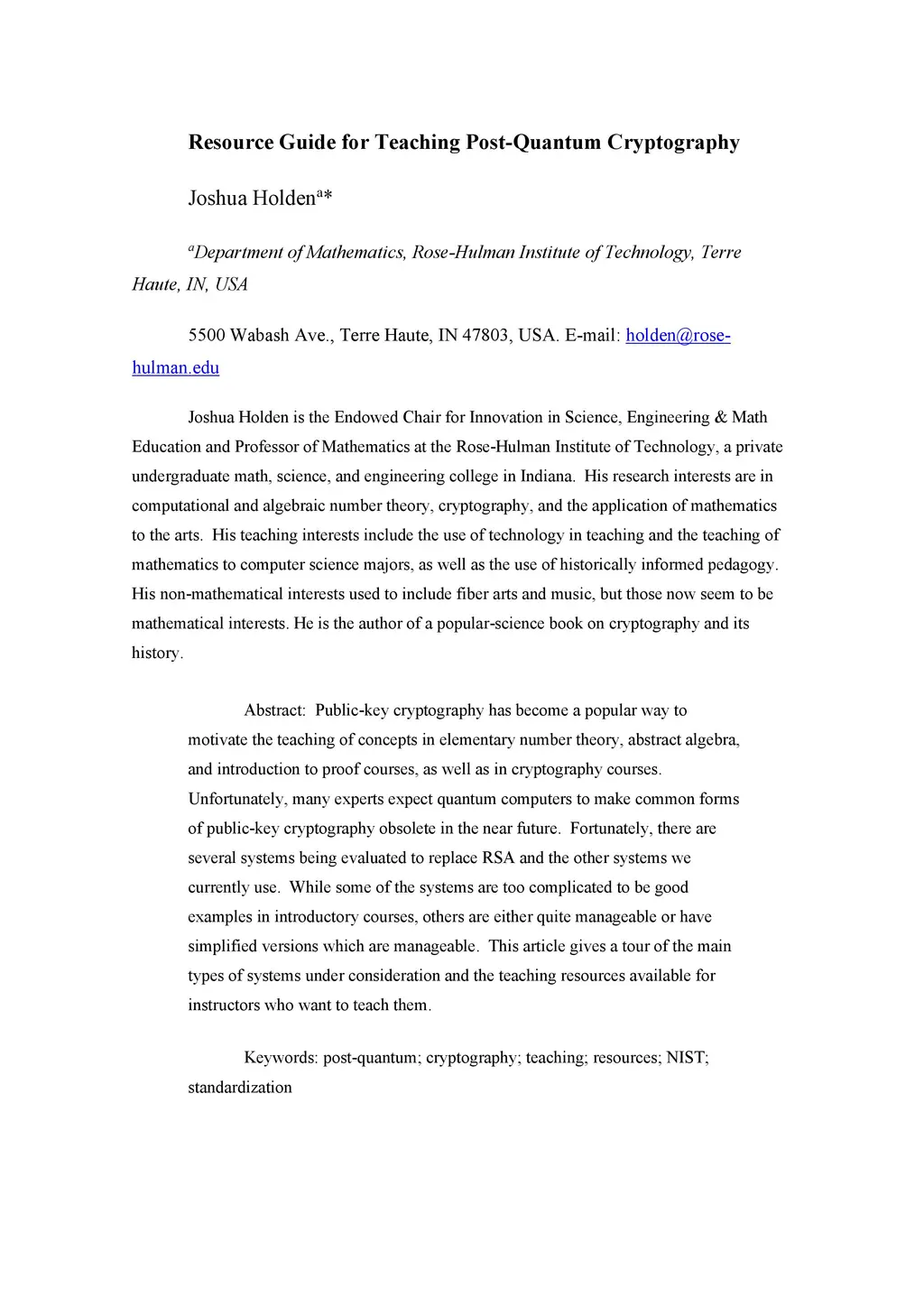 Resource Guide for Teaching Post-Quantum Cryptography