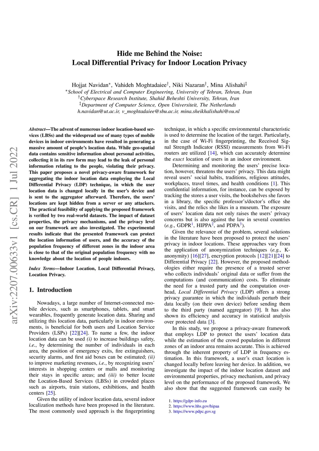 Hide me Behind the Noise: Local Differential Privacy for Indoor Location