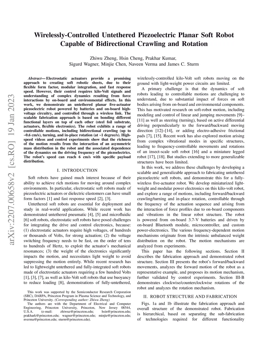 Wirelessly-Controlled Untethered Piezoelectric Planar Soft Robot Capable
