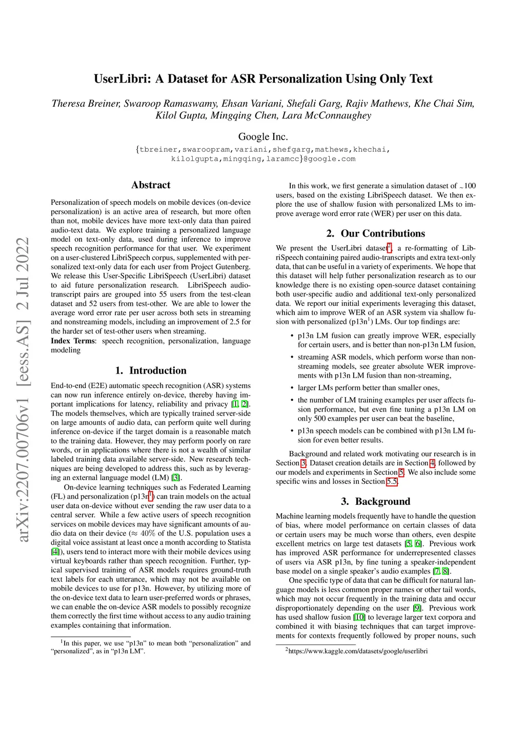 UserLibri: A Dataset for ASR Personalization Using Only Text