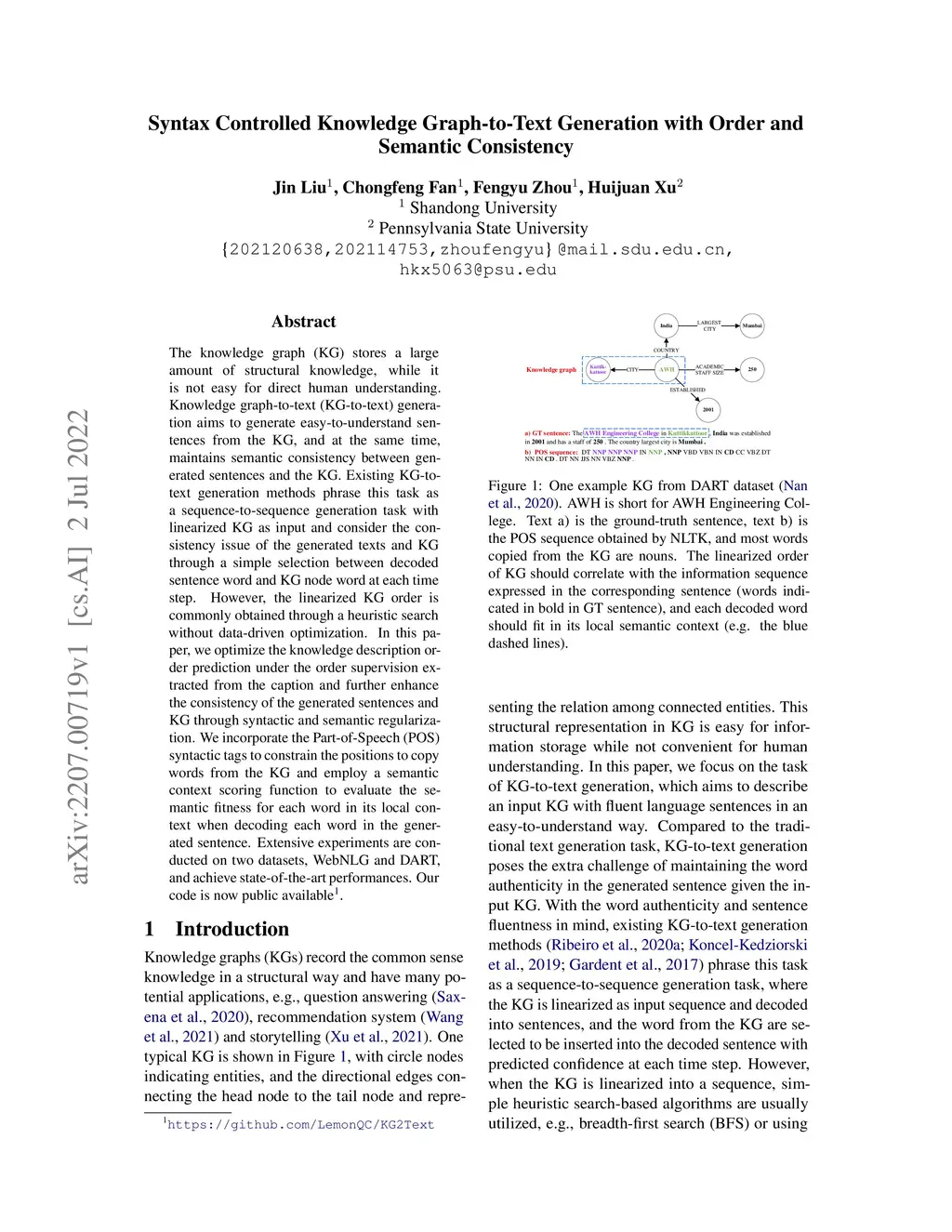 Syntax Controlled Knowledge Graph-to-Text Generation with Order and