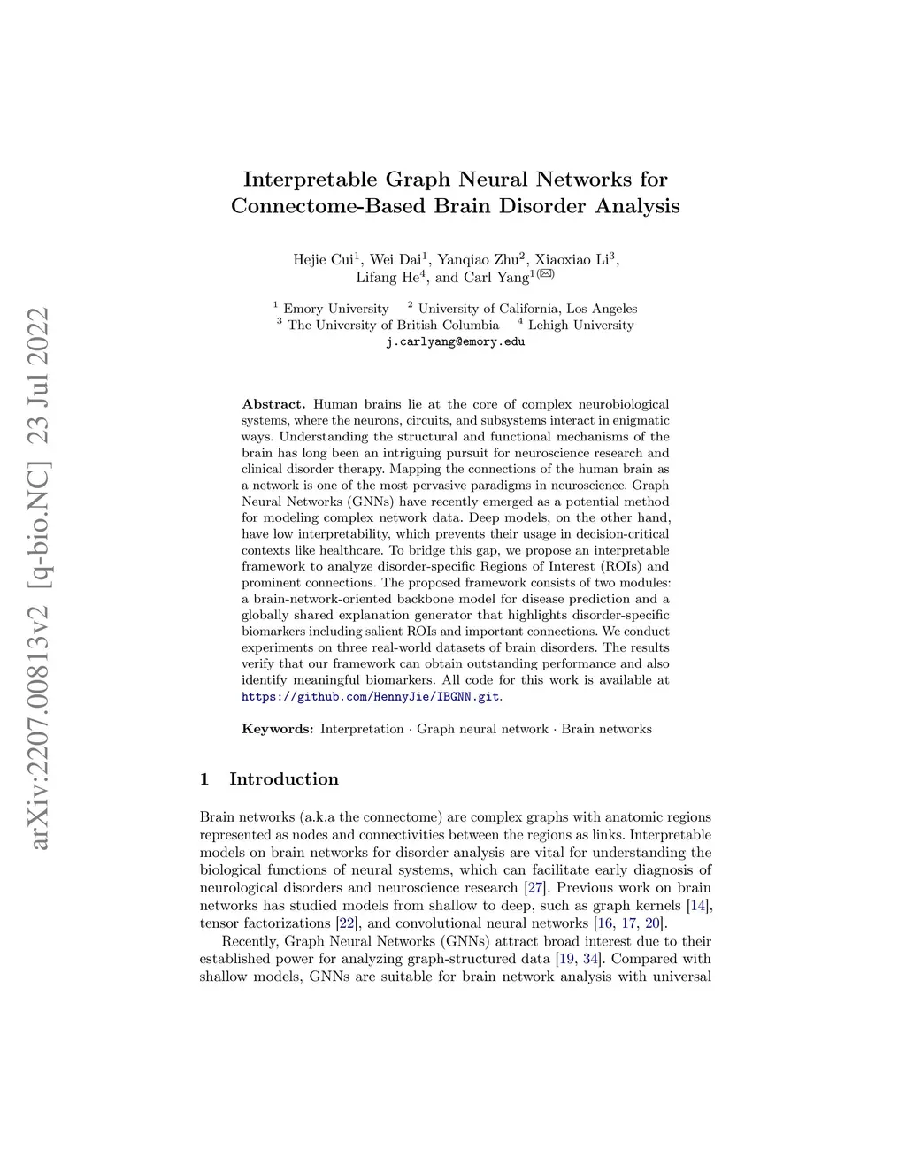 Interpretable Graph Neural Networks for Connectome-Based Brain Disorder