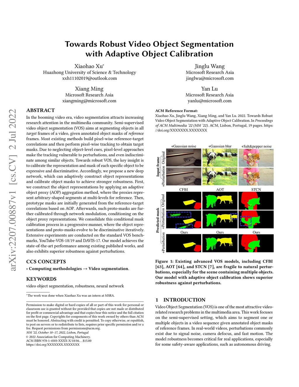 Towards Robust Video Object Segmentation with Adaptive Object