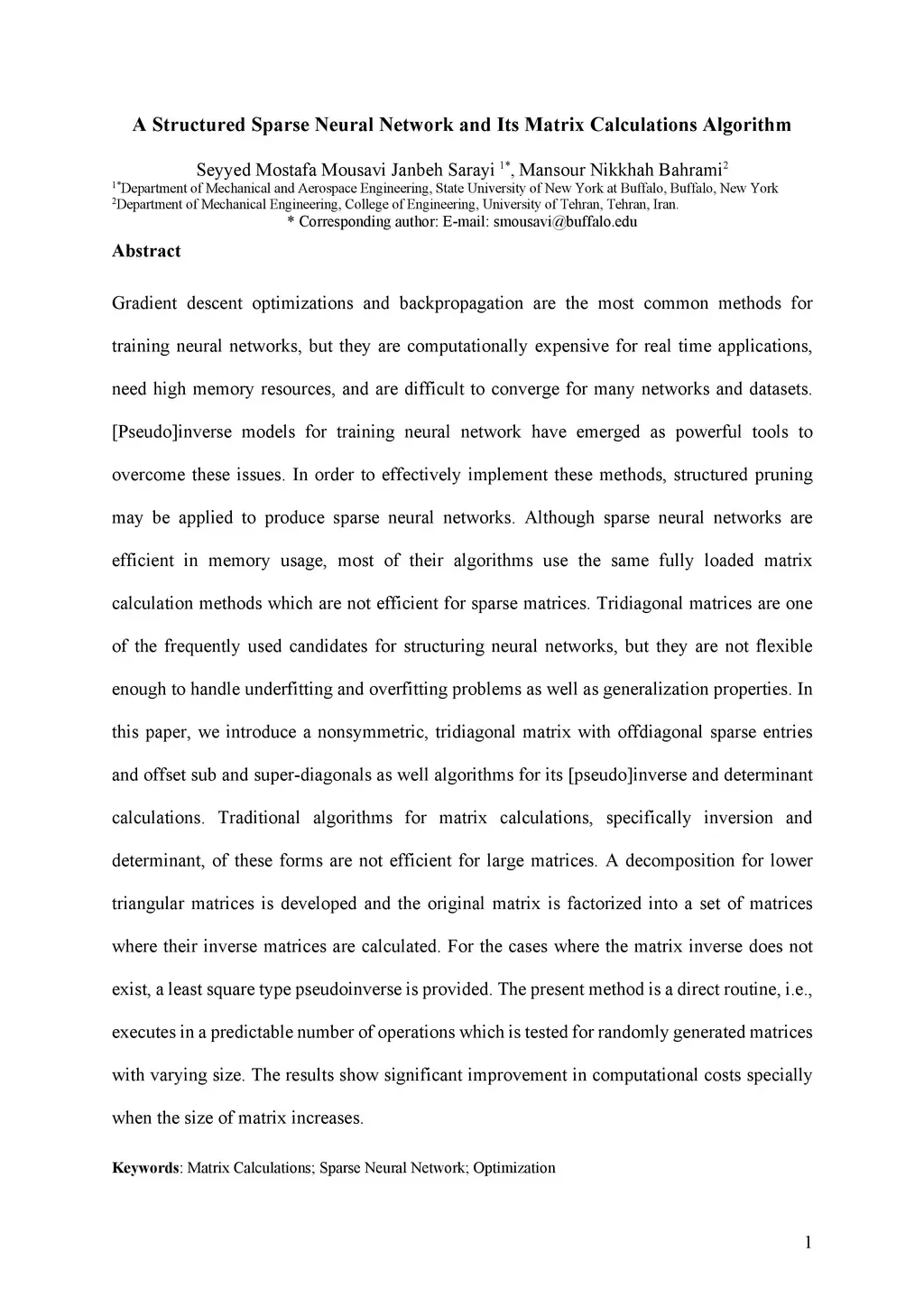 A Structured Sparse Neural Network and Its Matrix Calculations Algorithm