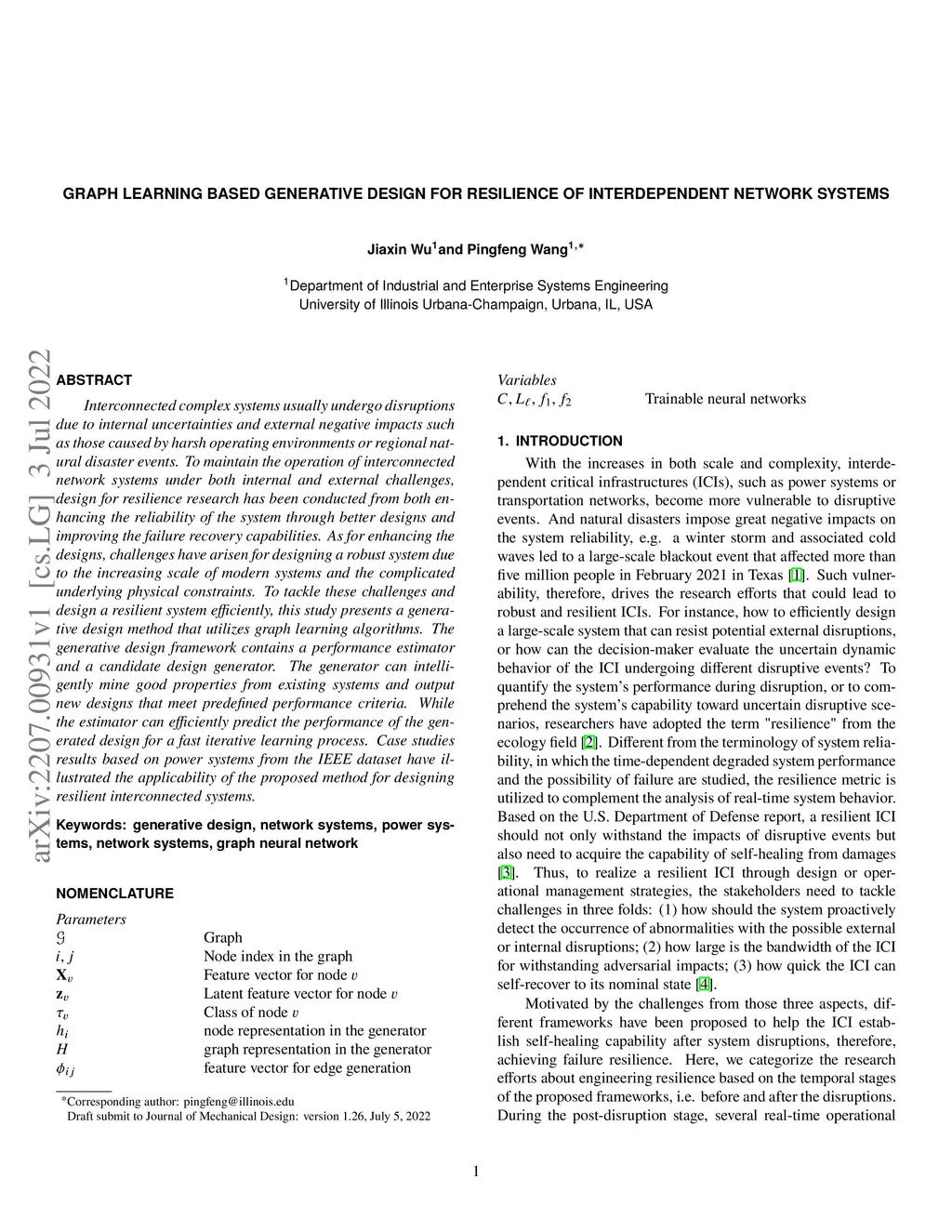 Interconnected complex systems usually undergo disruptions due to internal uncertainties and external negative impacts such as those caused by harsh operating environments or regional natural disaster events. To maintain the operation of interconnected network systems under both internal and external challenges, design for resilience research has been conducted from both enhancing the reliability of the system through better designs and improving the failure recovery capabilities. As for enhancing the designs, challenges have arisen for designing a robust system due to the increasing scale of modern systems and the complicated underlying physical constraints. To tackle these challenges and design a resilient system efficiently, this study presents a generative design method that utilizes graph learning algorithms. The generative design framework contains a performance estimator and a candidate design generator. The generator can intelligently mine good properties from existing systems and output new designs that meet predefined performance criteria. While the estimator can efficiently predict the performance of the generated design for a fast iterative learning process. Case studies results based on power systems from the IEEE dataset have illustrated the applicability of the proposed method for designing resilient interconnected systems.