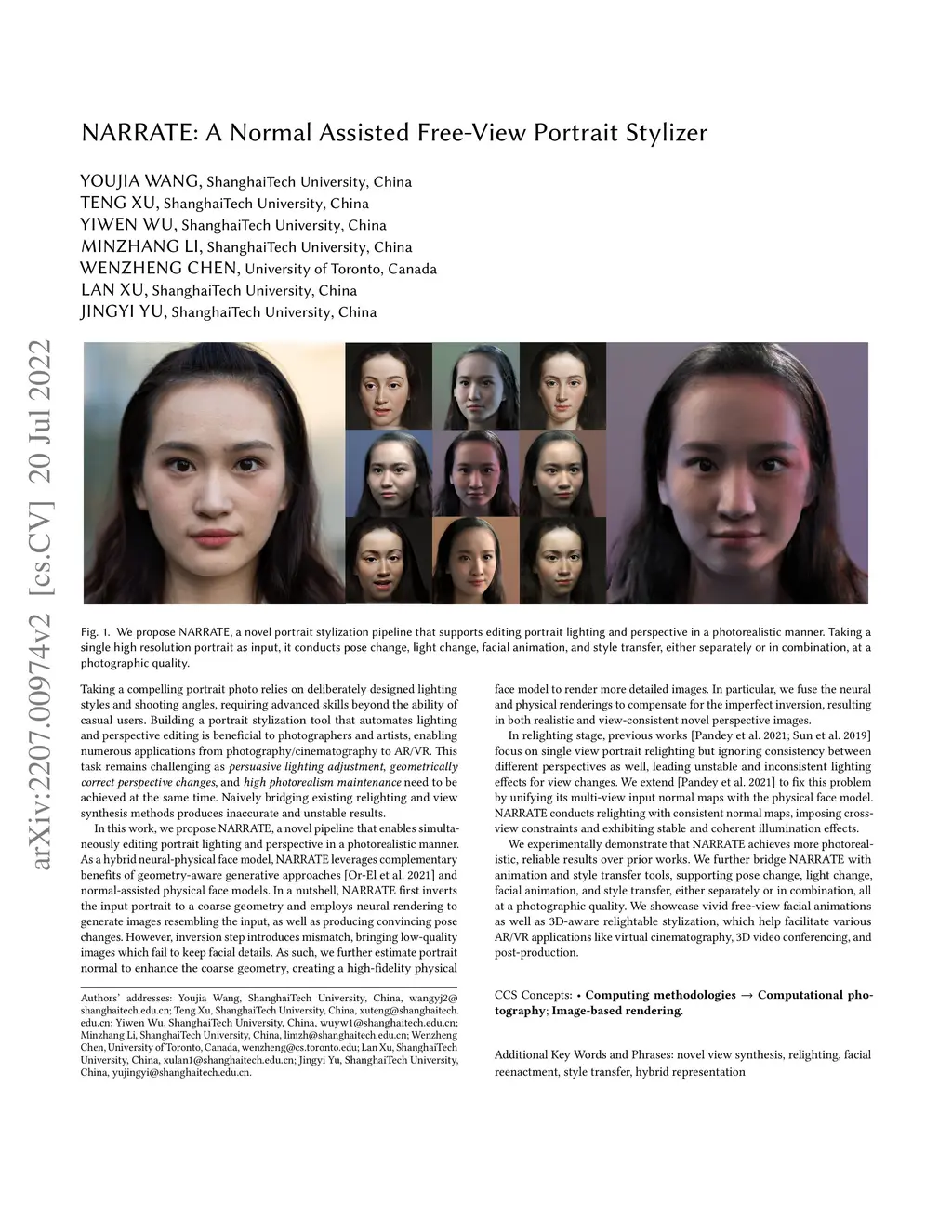 NARRATE: A Normal Assisted Free-View Portrait Stylizer