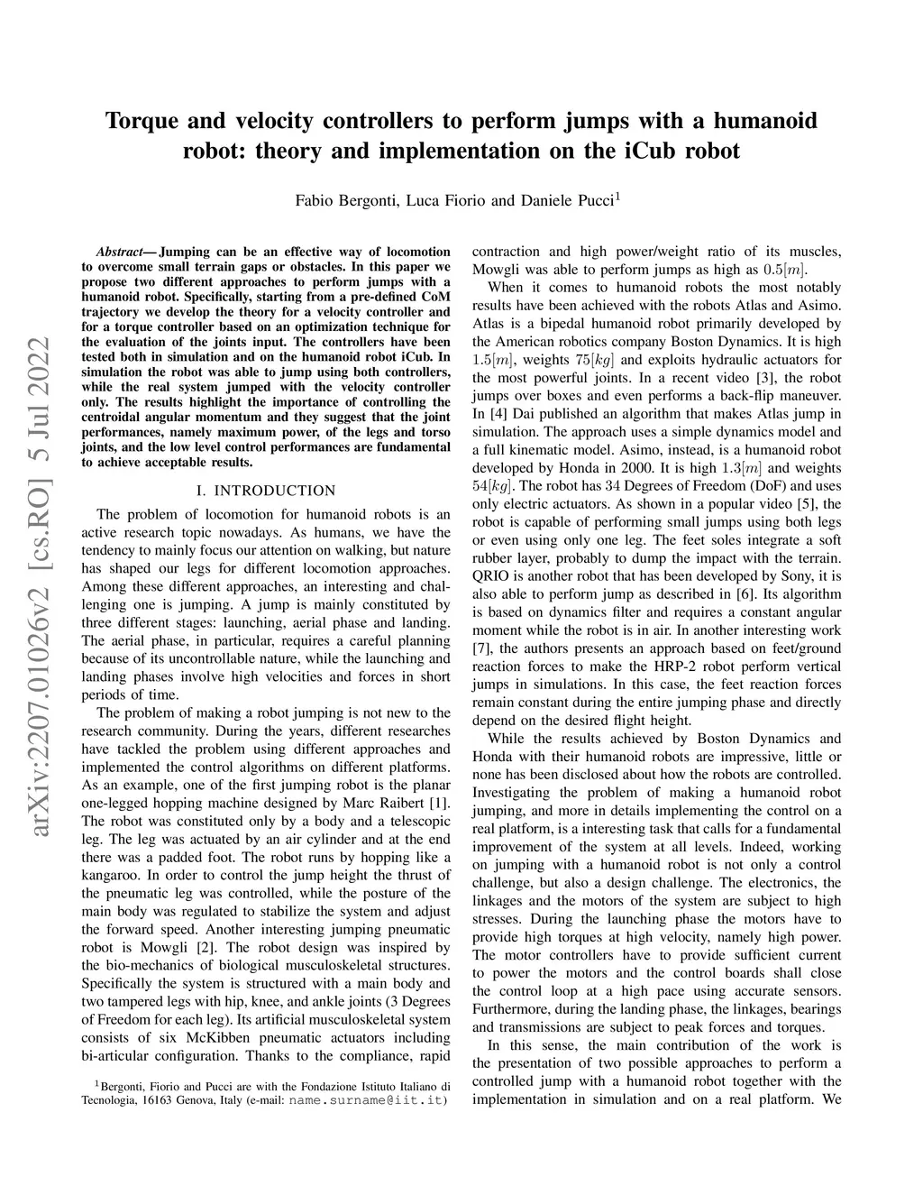 Torque and velocity controllers to perform jumps with a humanoid robot: