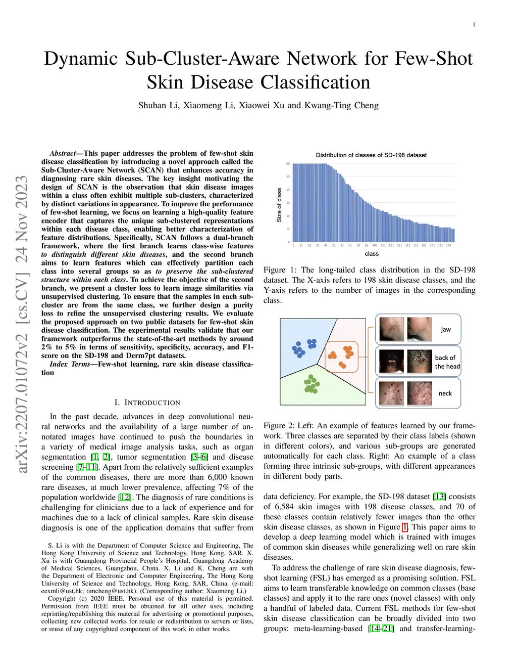 Dynamic Sub-Cluster-Aware Network for Few-Shot Skin Disease