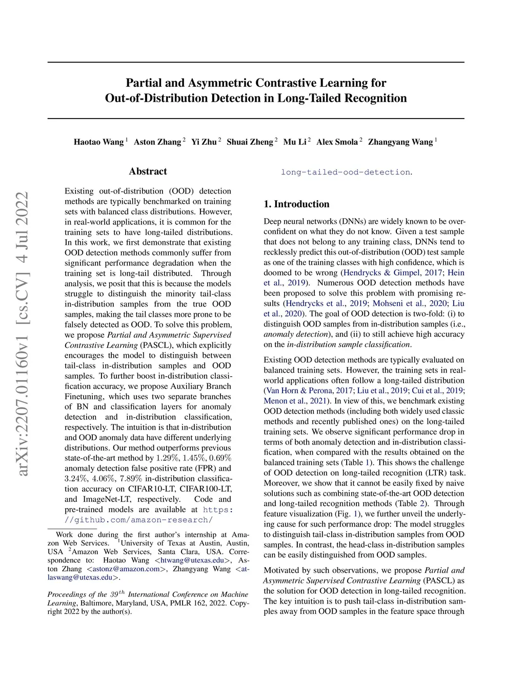 Partial and Asymmetric Contrastive Learning for Out-of-Distribution