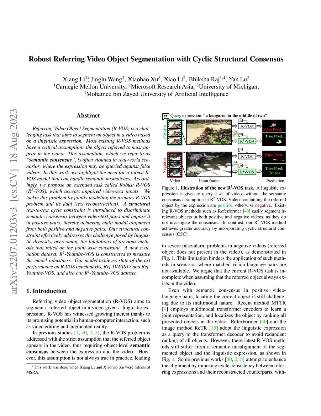 Referring Video Object Segmentation (R-VOS) is a challenging task that aims to segment an object in a video based on a linguistic expression. Most existing R-VOS methods have a critical assumption: the object referred to must appear in the video. This assumption, which we refer to as semantic consensus, is often violated in real-world scenarios, where the expression may be queried against false videos. In this work, we highlight the need for a robust R-VOS model that can handle semantic mismatches. Accordingly, we propose an extended task called Robust R-VOS, which accepts unpaired video-text inputs. We tackle this problem by jointly modeling the primary R-VOS problem and its dual (text reconstruction). A structural text-to-text cycle constraint is introduced to discriminate semantic consensus between video-text pairs and impose it in positive pairs, thereby achieving multi-modal alignment from both positive and negative pairs. Our structural constraint effectively addresses the challenge posed by linguistic diversity, overcoming the limitations of previous methods that relied on the point-wise constraint. A new evaluation dataset, R\textsuperscript{2}-Youtube-VOSis constructed to measure the model robustness. Our model achieves state-of-the-art performance on R-VOS benchmarks, Ref-DAVIS17 and Ref-Youtube-VOS, and also our R\textsuperscript{2}-Youtube-VOS~dataset.